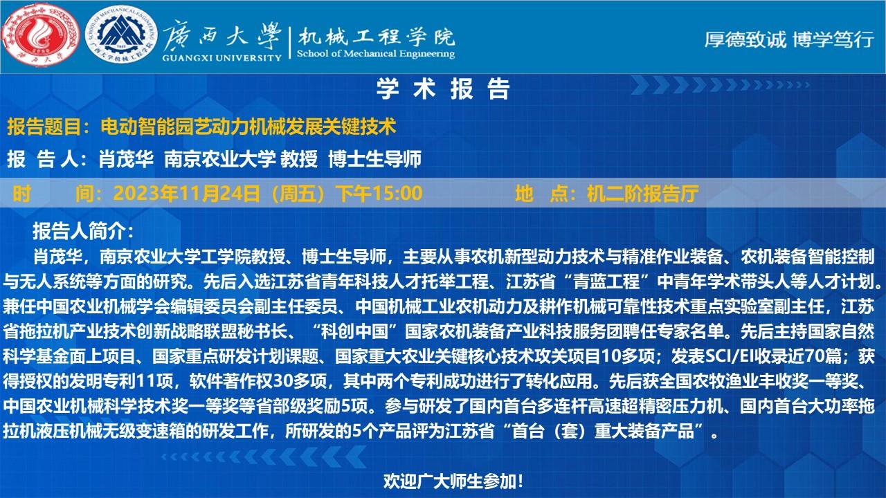 【beat365手机版官网入口学术报告】 电动智能园艺动力机械发展关键技术