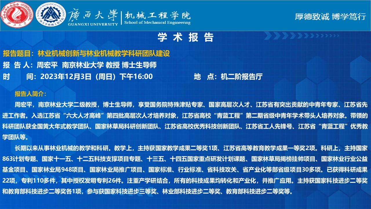 【beat365手机版官网入口学术报告】林业机械创新与林业机械教学科研团队建设