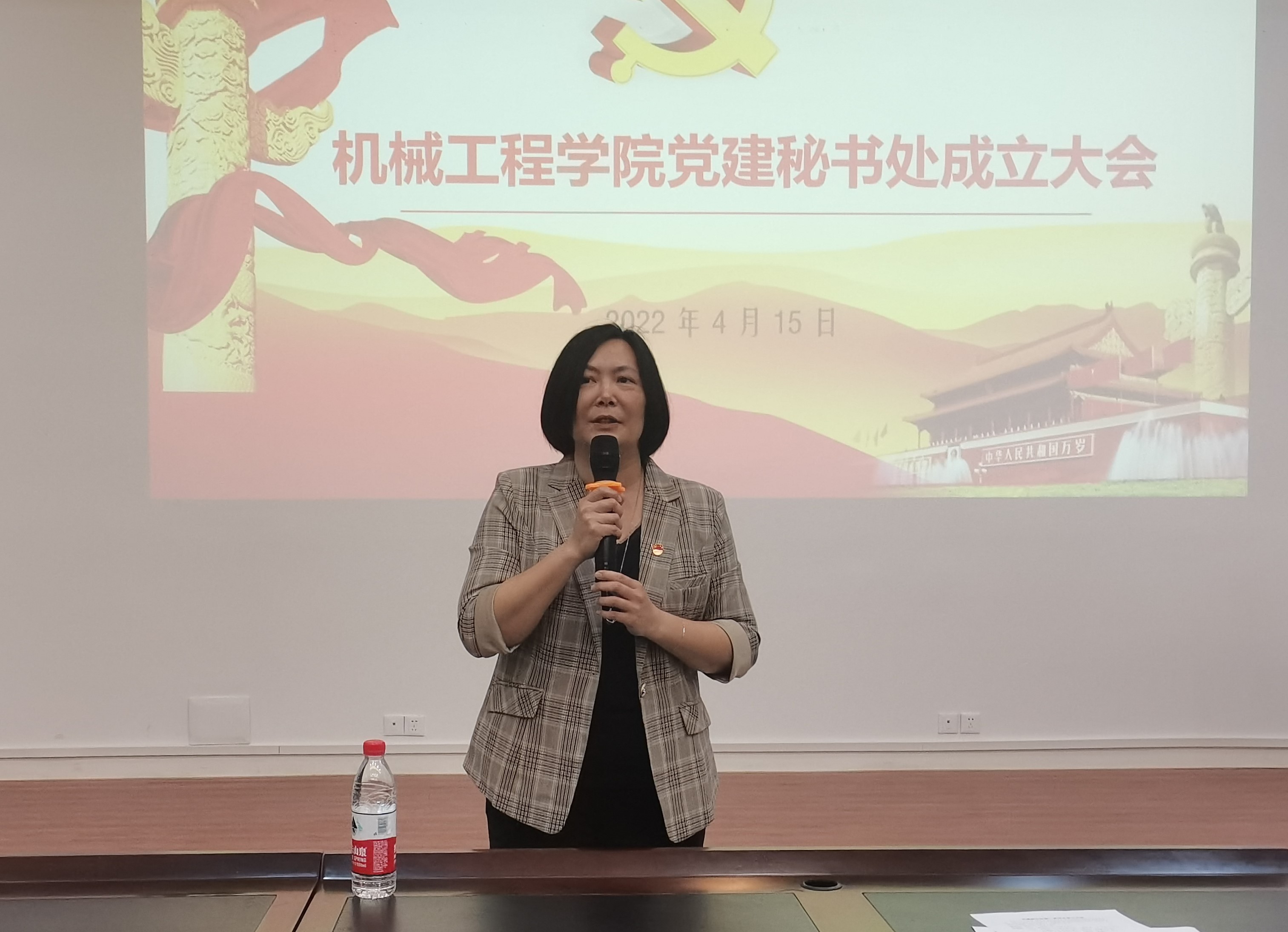 第一阶段的成立大会上,学院团委书记、党建秘书处指导老师程锐老师向大家介绍了党建秘书处的成立目的和筹备工作等情况,并对党建秘书处今后的主要工作做了简要概述。党建秘书处秘书长、2021级研究生李霖同学代表全体秘书处成员发言,承诺会做好带头示范作用,协调好院内各项工作,并对未来的工作提出了设想。学院党委副书记黄路明老师对秘书处的同学们提出了三点要求:明确身份定位、保持初心使命;争取早日入党、争做先锋模范;认真履行职责、做出突出成绩。学院党委书记卢婵江老师代表学院党委对党建秘书处的成立表示祝贺并对第一批学生骨干表达了欢迎,她强调加入党建秘书处对于同学们以后的成长和发展将产生重要的影响,党建秘书处将成为学生干部锻炼自己能力的重要平台,希望同学们在为组织工作中不断学习、不断成长。