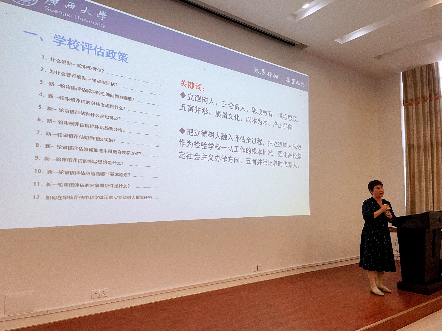 学院分管教学工作的副院长李俚详细介绍了我院本科教育教学审核评估工作的准备情况,并就引导性问题进行指导和培训。