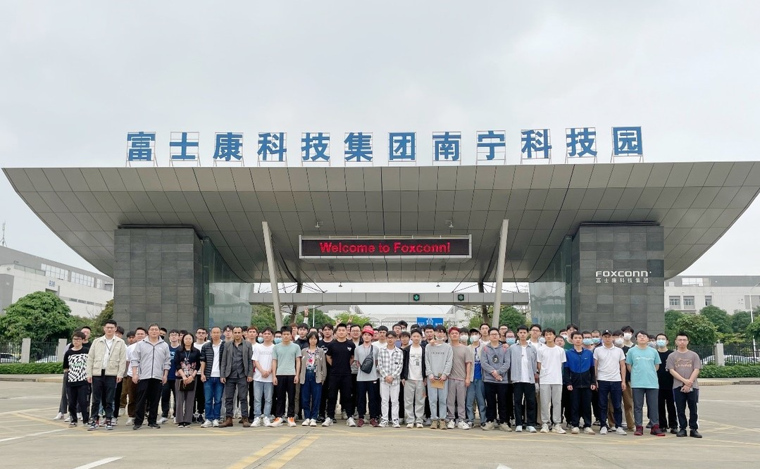 2023年4月12日上午,由龙雨教授和周俊老师带队,机械制造工程专业2020级学生一行86人到南宁富联富桂精密工业有限公司交流研习。富联富桂公司人资闫巧薇专理,广西大学校友、工程技术支援处机构研发工程师宋金环、陶文新、覃诗等人参加座谈交流。