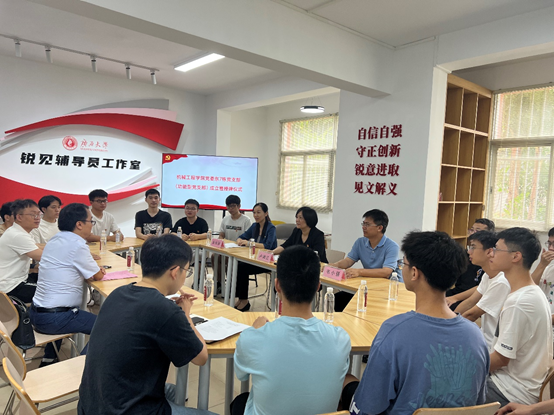 学院党委书记卢婵江为党支部授牌并发表讲话:在学生宿舍区设立功能型党支部是新时代党建高质量发展的创新举措,是基层党组织以实际行动践行“人民至上”的习近平新时代中国特色社会主义思想的体现。东7栋党支部的设立旨在进一步发挥党的思想引领功能,践行服务学生成长成才宗旨,引导学生主动参与学校学院的一流学科建设。希望党支部的全体师生党员树立主人翁意识,主动作为,敢于创新,依托“锐见辅导员工作室”的建设,汇聚并充分发挥支部党员在理论宣讲方面的优势,打造出一个有水平、有温度、有影响、有效果的理论宣讲功能型党支部,成为广西大学传播习近平新时代中国特色社会主义思想的新阵地,点燃思想伟力的火种,要把支部建设成为能让同学们近距离感受到来自身边党员师生们勇于担当、服务成长的服务型党支部。