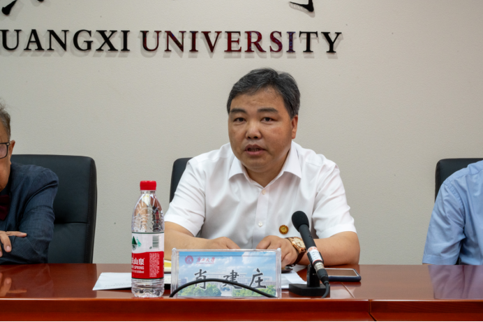 随后,广西大学常委、副校长肖建庄代表广西大学致辞。他指出,广西大学非常重视新能源汽车的发展并强调技术、产品、服务社会和经济之间紧密相扣的关系。他表示,现阶段将继续加大对我校相关学科建设、新能源汽车研究发展的支持力度,积极推动学术研究与产业创新的有机结合,力争为广西新能源汽车产业的蓬勃发展贡献力量。