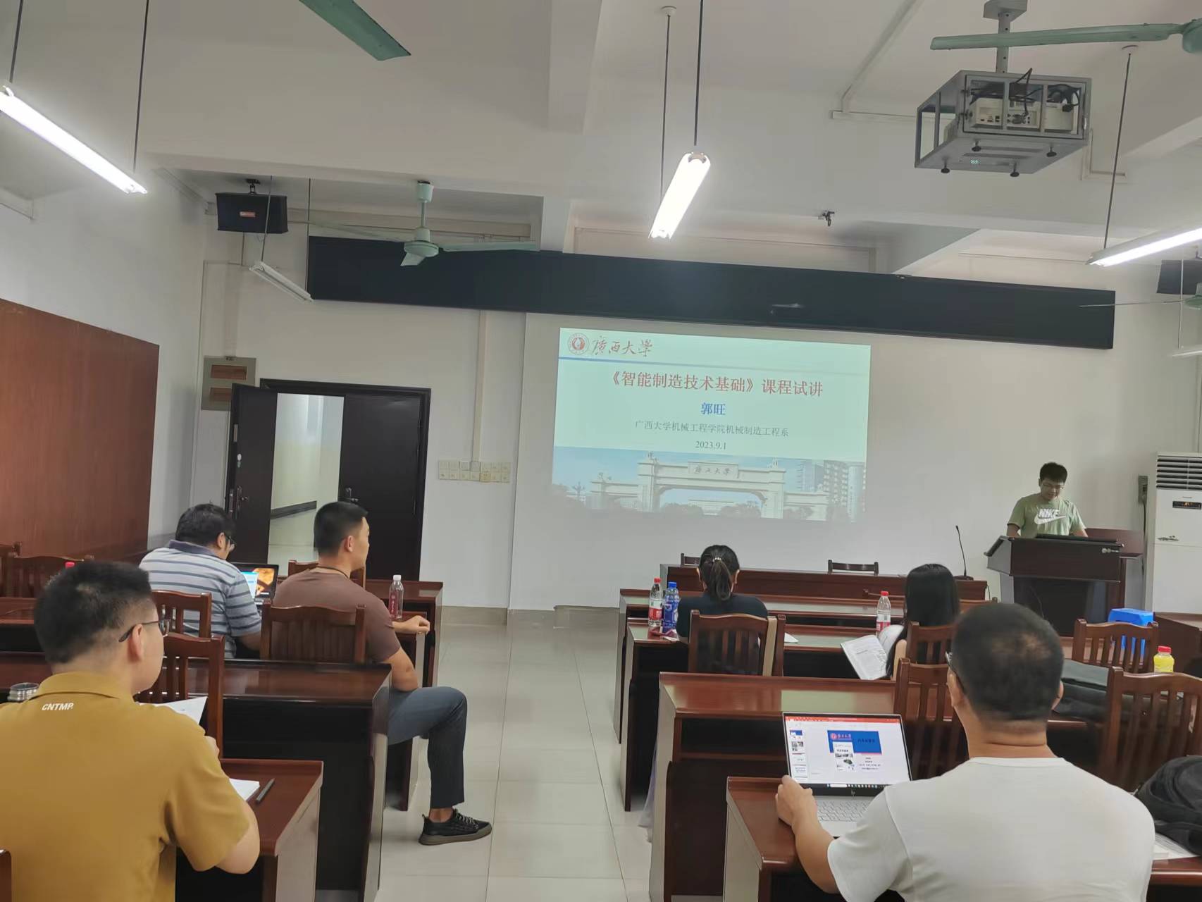 刘黎明、郭旺、徐敏敏、付洋、李宏伟、唐伟力、董天云、万振华、李嘉宝和官维等10位青年教师分成3个小组,通过多媒体方式,分别试讲了《智能制造技术基础》、《汽车试验学》、《工程制图(近机类)》、《微机原理与接口技术》、《控制工程》、《可再生能源及其利用技术》、《内燃机设计》和《传热学与流体力学》等多门课程。