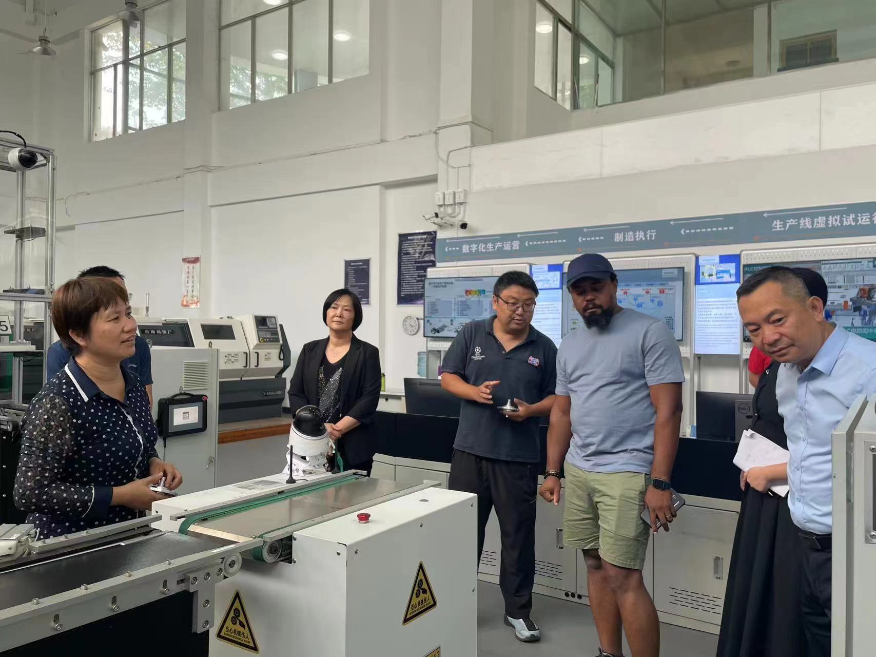 在工程训练中心,李俚副院长向来宾详细介绍了柔性制造系统、五轴数控加工系统、数控机床等平台设备的运转和使用情况,工程训练中心承担本科实验教学、以及研究生利用先进设备开展科研等的相关情况。Nawajiugo还进一步了解使用五轴数控加工系统的技术细节等,他表示很期待能与beat365手机版官网入口开展深入的交流与合作,将向公司和尼日利亚国内企业宣传我院的科研实力,并会积极推荐更多的尼日利亚大学师生到广西大学开展交流。