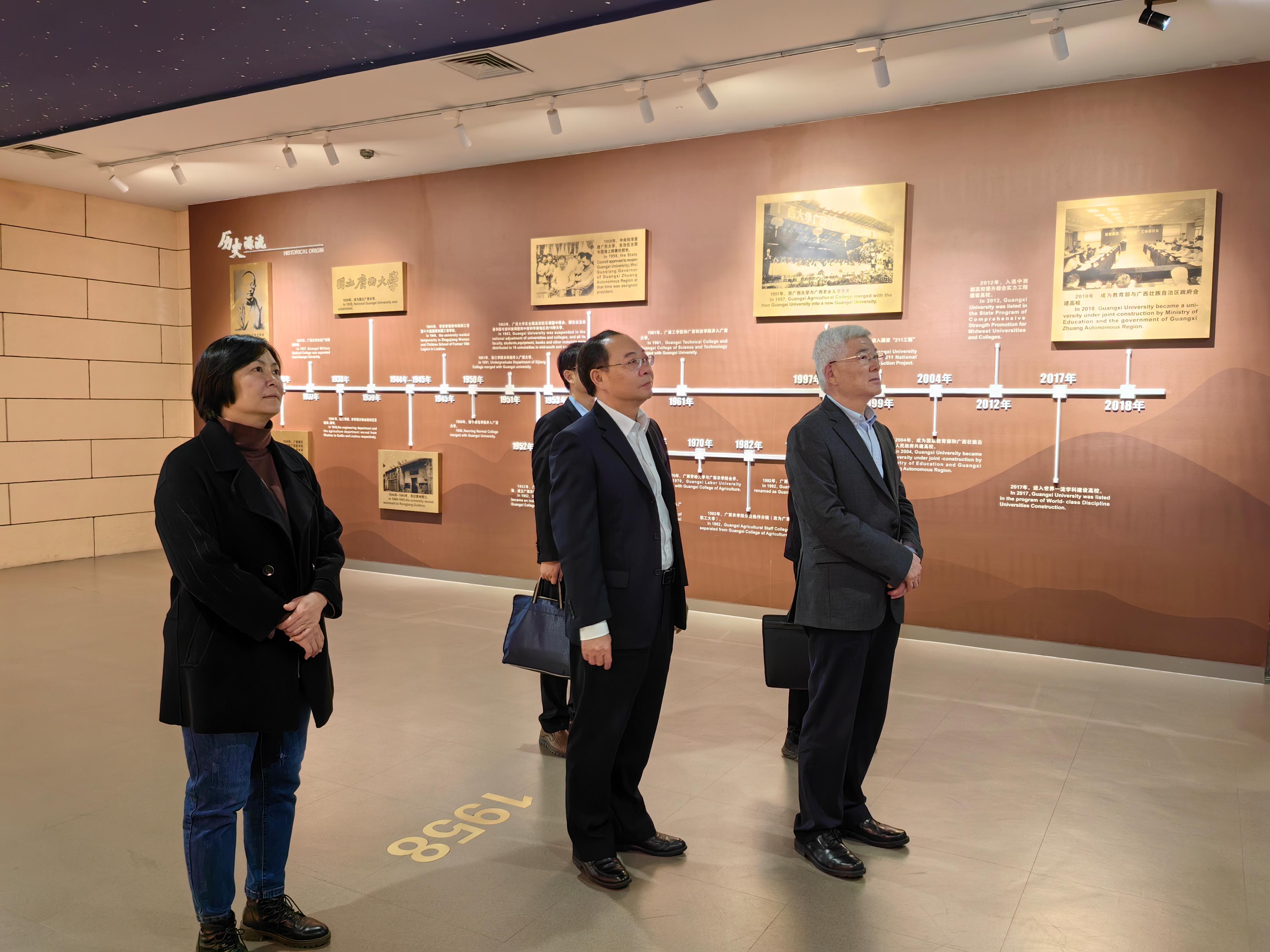 宣益民一行实地调研了校史馆和beat365手机版官网入口,深入了解广西大学的历史和建设发展情况,听取了我院在智能农机、煮糖设备、动力装备等方面的情况介绍,对广西大学beat365手机版官网入口的办学成效表示肯定。