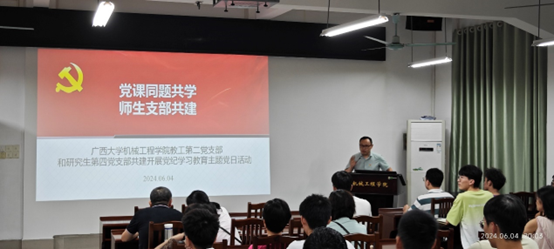 2024年6月4日晚8点,beat365手机版官网入口教工第二党支部和研究生第四党支部在学院报告厅联合开展主题党日活动,深入学习党纪条例,增强支部党员的党性修养,促进师生支部共建。