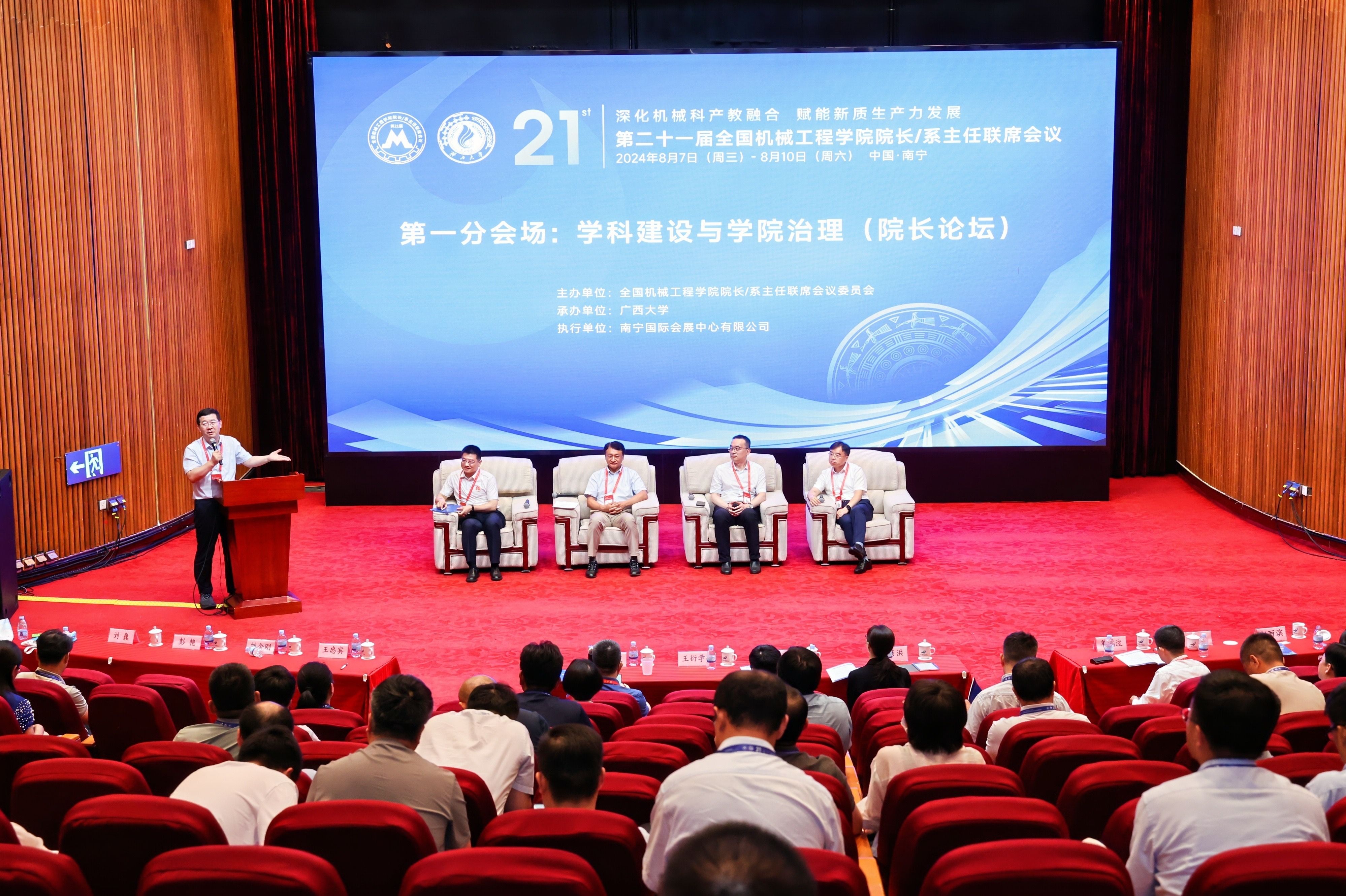 本届大会设立一个主会场、四个分会场,共设置44场主旨报告和分会场报告。分别聚焦学科建设与学院治理、专业建设与创新育人、教学改革与质量提升、未来技术与产业升级四个专题,同时新增设院长论坛,从科产教融合的维度,探讨新形势下高校如何助推新质生产力的高质量发展,来自相关高校的校长、院长、系主任和专家从典型案例、先进经验和前沿视角等分别进行报告交流。我院执行院长贺德强教授作题为“交叉融合,服务需求-广西大学beat365手机版官网入口学科建设与人才培养”的报告,新能源汽车研究中心主任陈勇教授作题为“新能源汽车动力系统技术现状及发展”的报告。