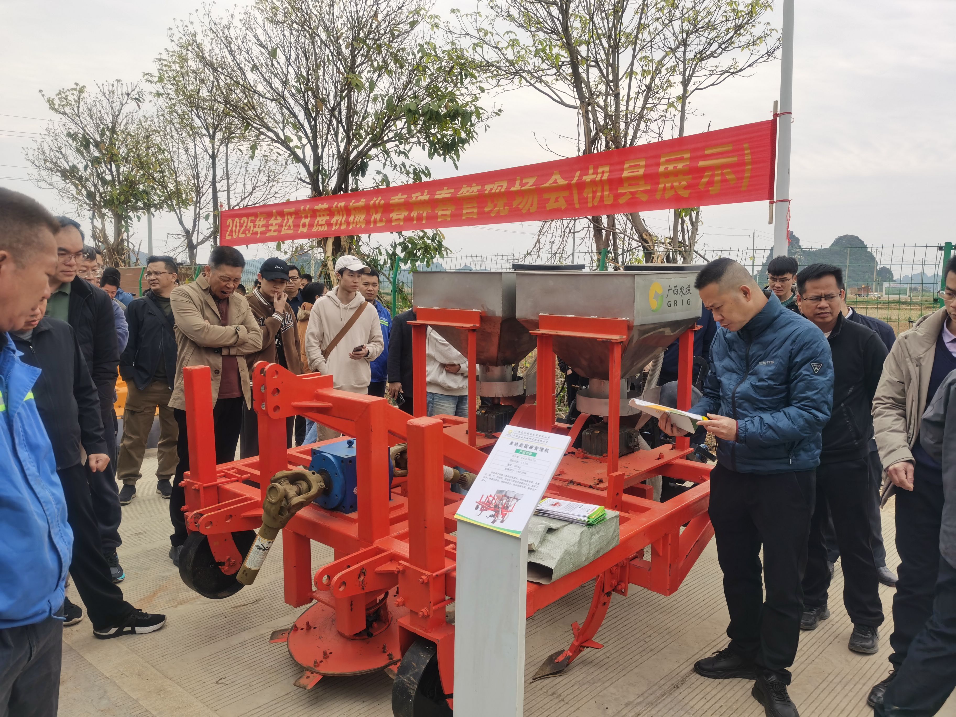 2025年3月18日,由广西农业农村厅主办,扶绥县人民政府承办的“2025年广西甘蔗机械化春种春管现场会”在我院位于农科新城的“广西农业机械化产学研推示范基地”召开。此次现场会以“甘蔗春种春管智慧农机+”为主题,集中展示了智能化、无人化农机设备在甘蔗春种春管中的创新应用,为推动甘蔗产业现代化发展注入强劲科技动能。学院党委书记、现代产业学院常务副院长卢婵江、现代产业学院办公室主任杨望等20名师生代表到现场观摩。