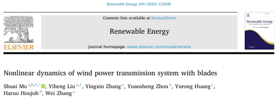 近日,我院2022级硕士研究生刘翊恒(导师:莫帅教授)以共同第一作者在工程技术领域国际权威学术期刊《Renewable Energy》(中科院一区,Top期刊,IF:9.0)发表研究成果“Nonlinear dynamics of wind power transmission system with blades”。该成果以广西大学beat365手机版官网入口为第一单位。