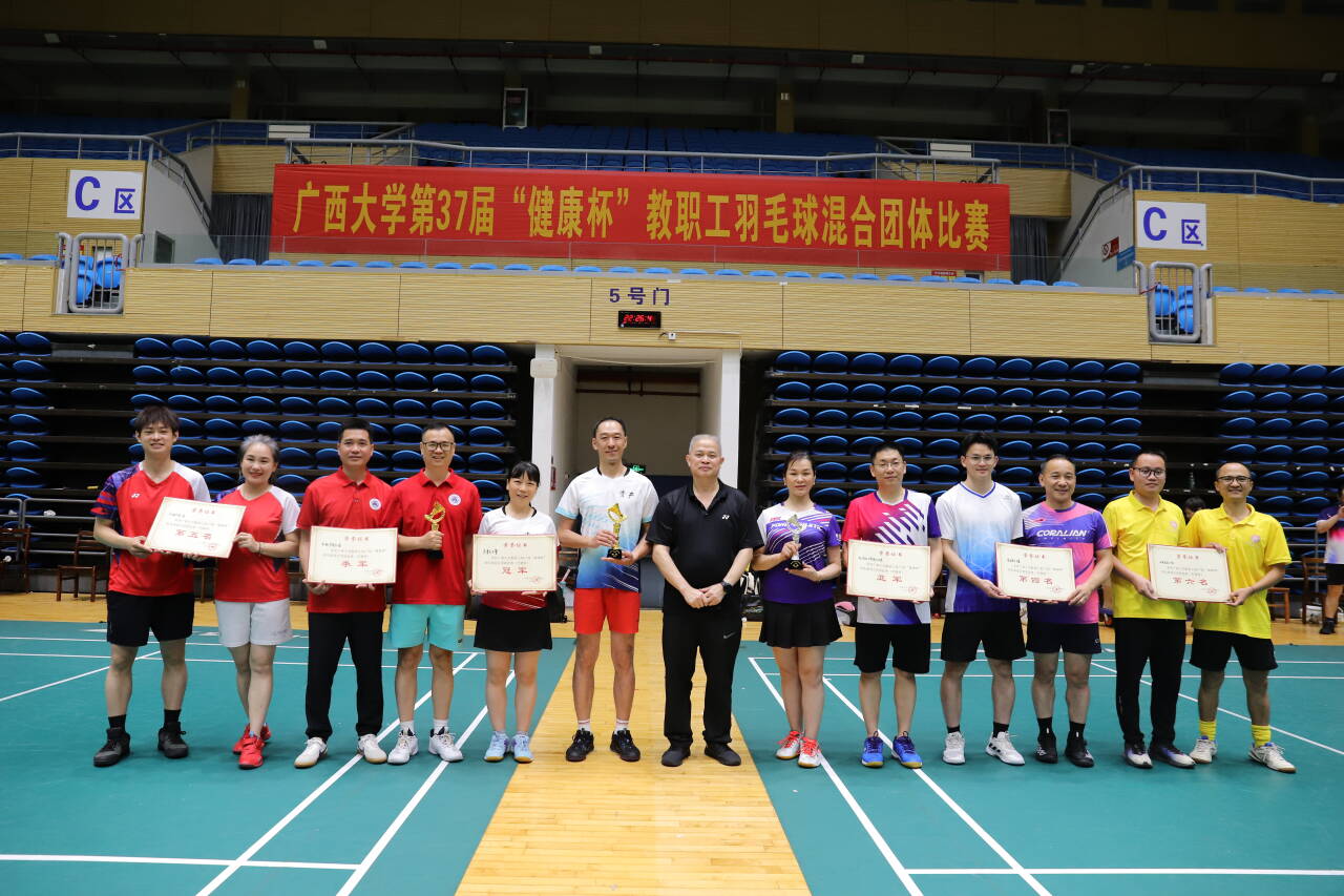 4月24日,广西大学教职工第37届“健康杯”羽毛球混合团体比赛圆满落幕。我院教职工代表队凭借顽强拼搏的精神和默契的团队协作,获本次比赛(甲级组)季军,创造了学院在该项赛事中的历史最好成绩;黄学创老师获优秀运动员奖,罗靖老师获新秀运动员奖。