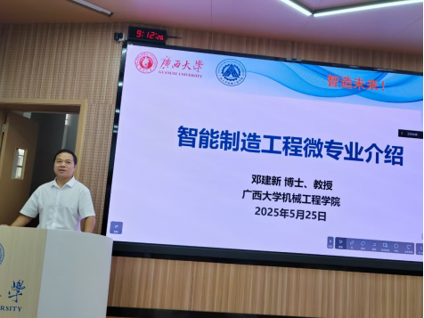 微专业招生宣传会议由两个阶段组成,在会议的第一阶段,教务处谢健副处长介绍了学校开办微专业的重要性、目的以及学校针对微专业的相关支持政策;专业负责人邓建新教授介绍《智能制造工程》微专业的培养目标、开课形式、招生政策等;北京华航唯实机器人科技股份的梁承刚经理做了《AI+智能制造场景的探索》的专题演讲,介绍智能制造解决问题的过往、现在和未来,以及企业对人才培养的合作方式与形式;国投融合科技股份有限公司的张棠宏工程师以国投为企业实施落地的案例分享《智能制造工程》微专业中数字化技术的先进性。对行业企业的转型升级提升,以及通过专业学习对个人专业能力及竞争力的提升;海尔智家股份有限公司的邱洪萍经理介绍了海尔智家的人才需求信息和智能制造的就业前景;李俚副院长做了总结发言,首先感谢学校教务处对beat365手机版官网入口开办智能制造工厂微专业的支持和帮助,其次感谢合作企业给同学们精彩的前沿技术的报告和就业前景的分享以及协办微专业的大力支持,最后用“愿我们携手同行,以智慧为笔、以技术为墨,共同绘制智能制造的壮丽蓝图!欢迎同学们报读智能制造微专业”结束发言。
