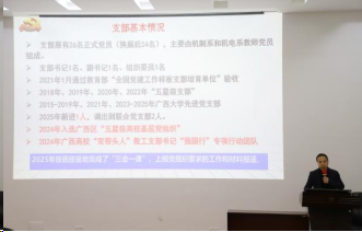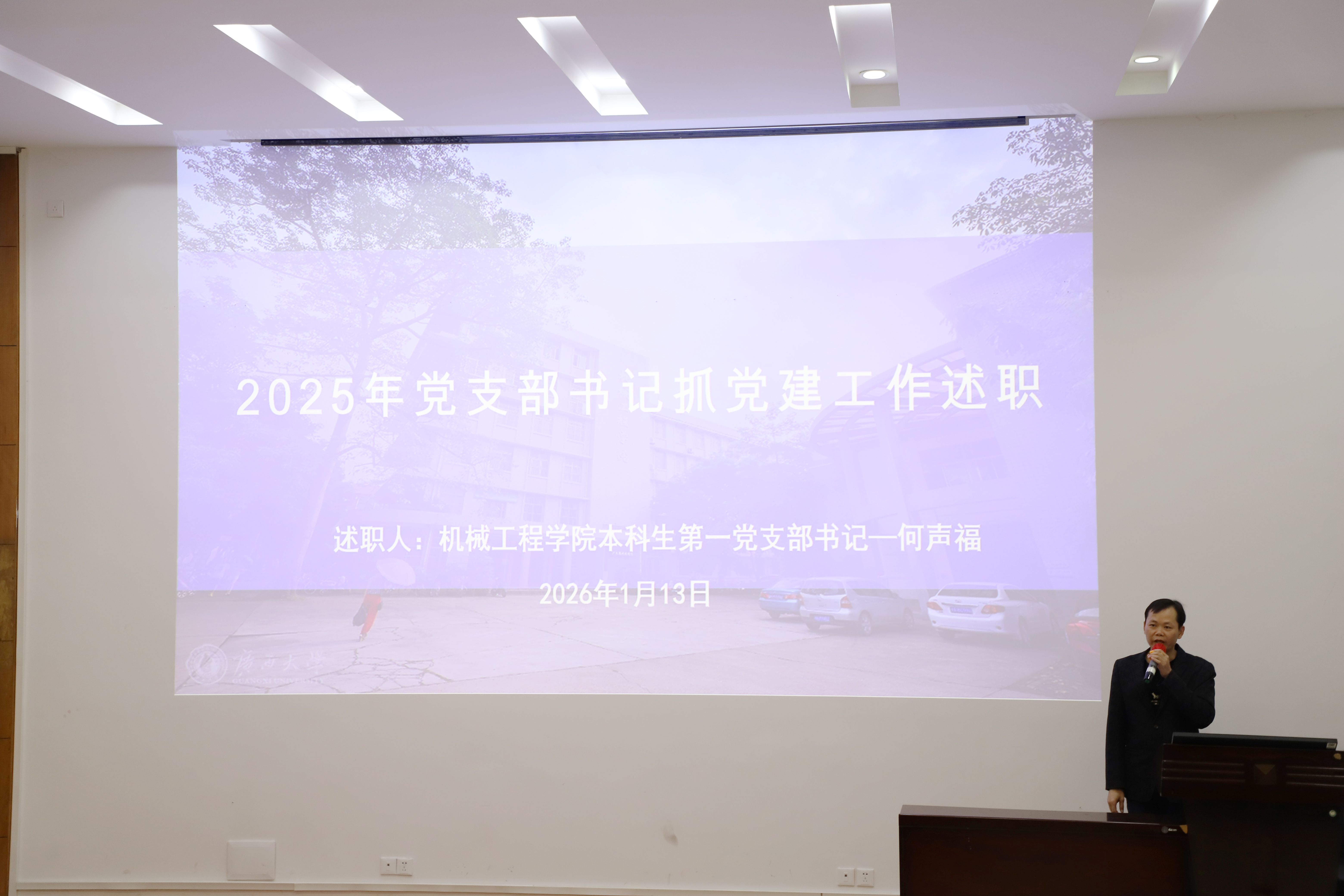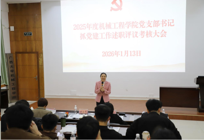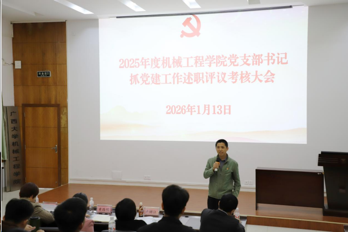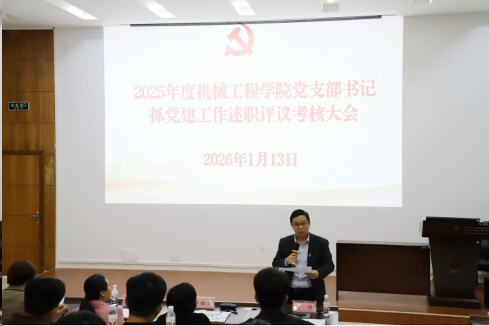 为深入学习贯彻习近平总书记关于党的建设的重要思想和党的二十届四中全会精神,进一步强化党的组织力与凝聚力,督促党支部书记切实履行党建工作职责,激发支部战斗堡垒作用和党员模范带头作用的发挥,在实现全面从严治党向基层的延伸的同时,通过党建引领推动学院各项事业的高质量发展。2026年1月13日,学院党委在机二阶隆重召开2025年度党支部书记抓党建工作述职评议考核大会。学院党委领导班子成员、各党支部委员等76人参会,共同听取全院各党支部书记的述职汇报。